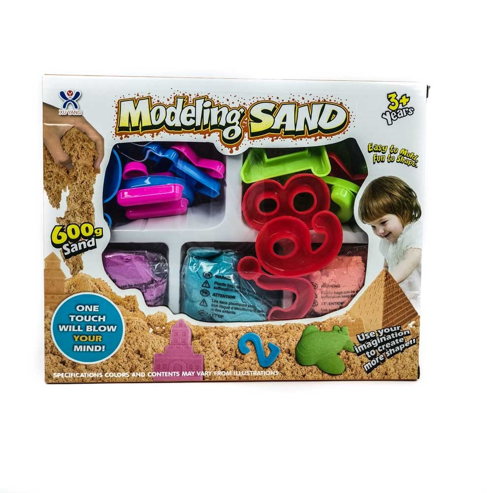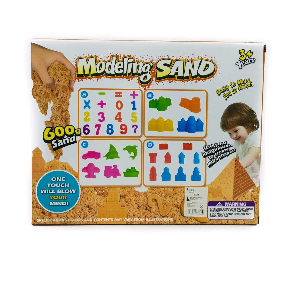 MODELING SAND EASY TO MOLD , FUN TO SHAPE 600G SAND 3+ These kind of toys encourage children sensory development and fine motor skills , teaches creativity and Enhance hand-eye coordination. They can learn many concepts and develop important skills while having fun. BOX SIZE