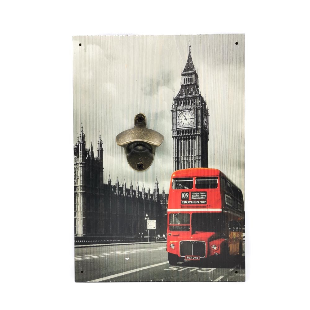 Retro Printed and solid wood material wooden wall bottle opener perfect for decorating homes and bar restaurant . size 24x34 cm