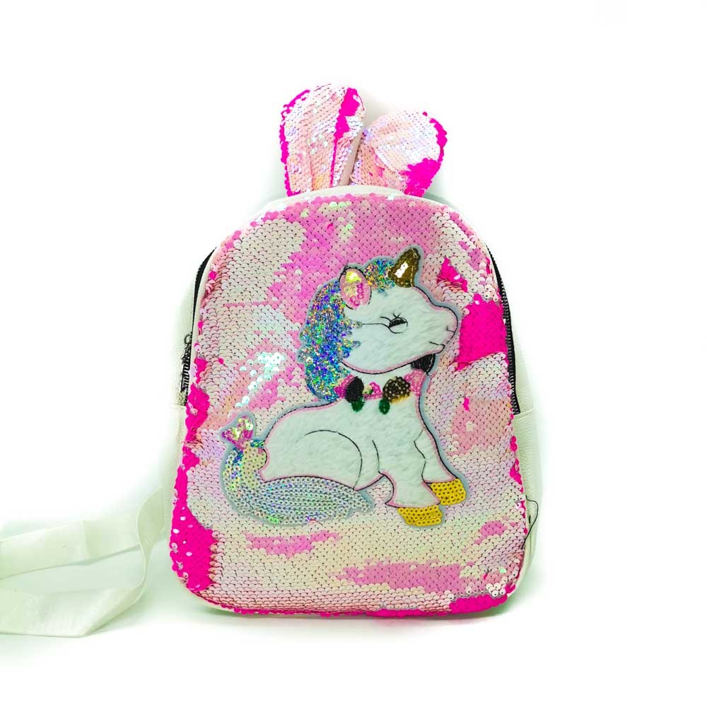 Cute Unicorn Backpack Lightweight with  Glitter Reversible Sequin  and glitter material with adjustable  shoulder straps for support and comfort.