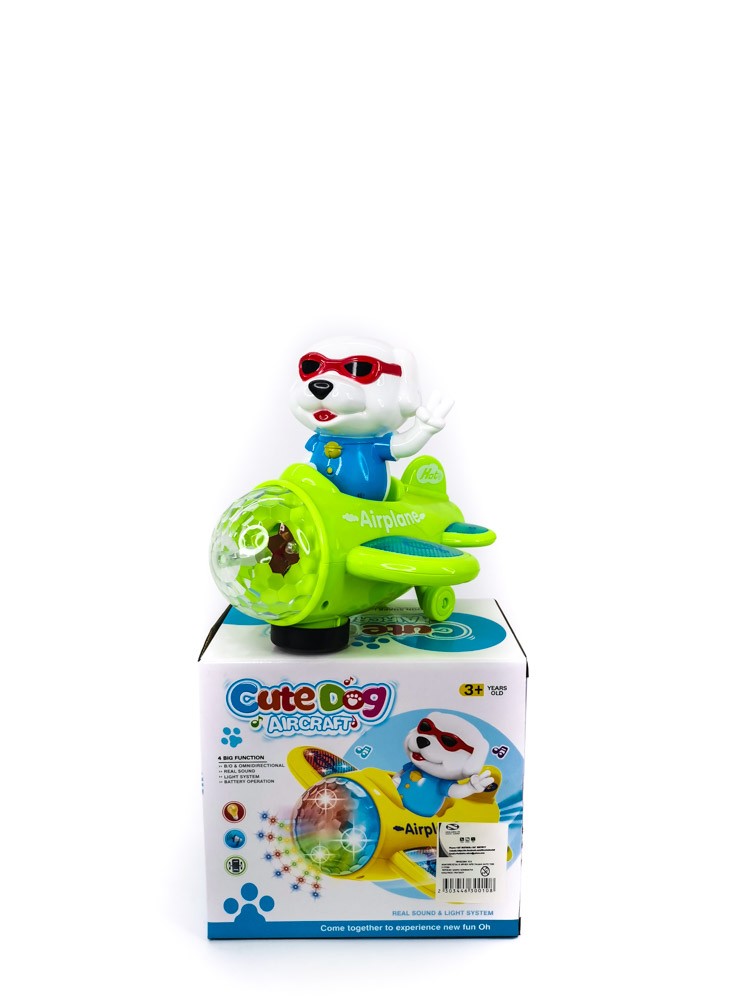 CUTE DOG , AIRCRAFT WITH SOUND , LIGHT SYSTEM BATTERY OPERATION AGE 3 +
